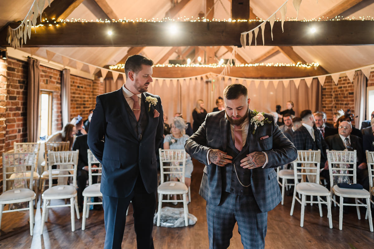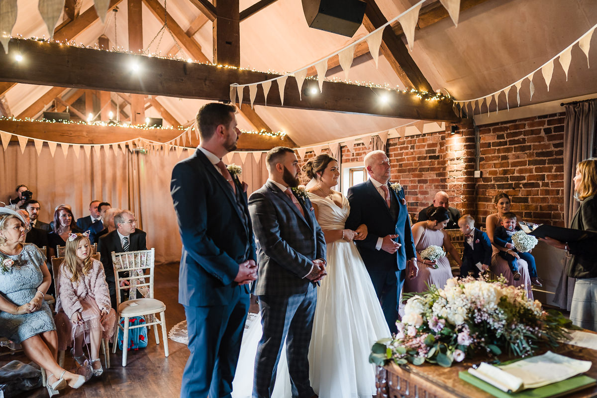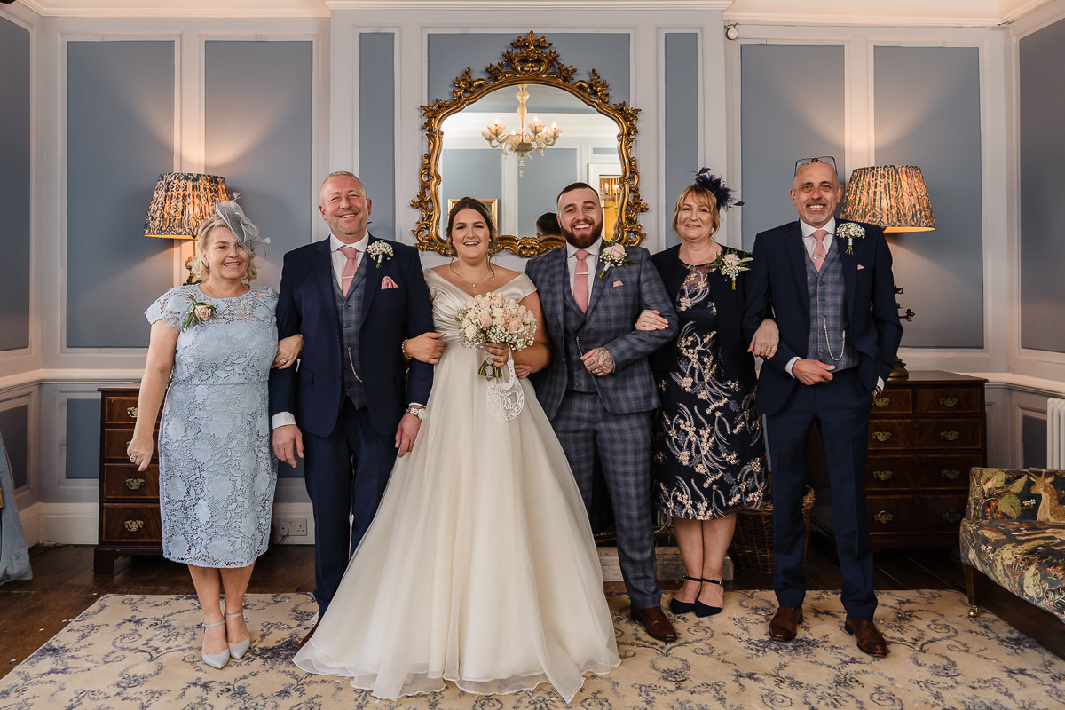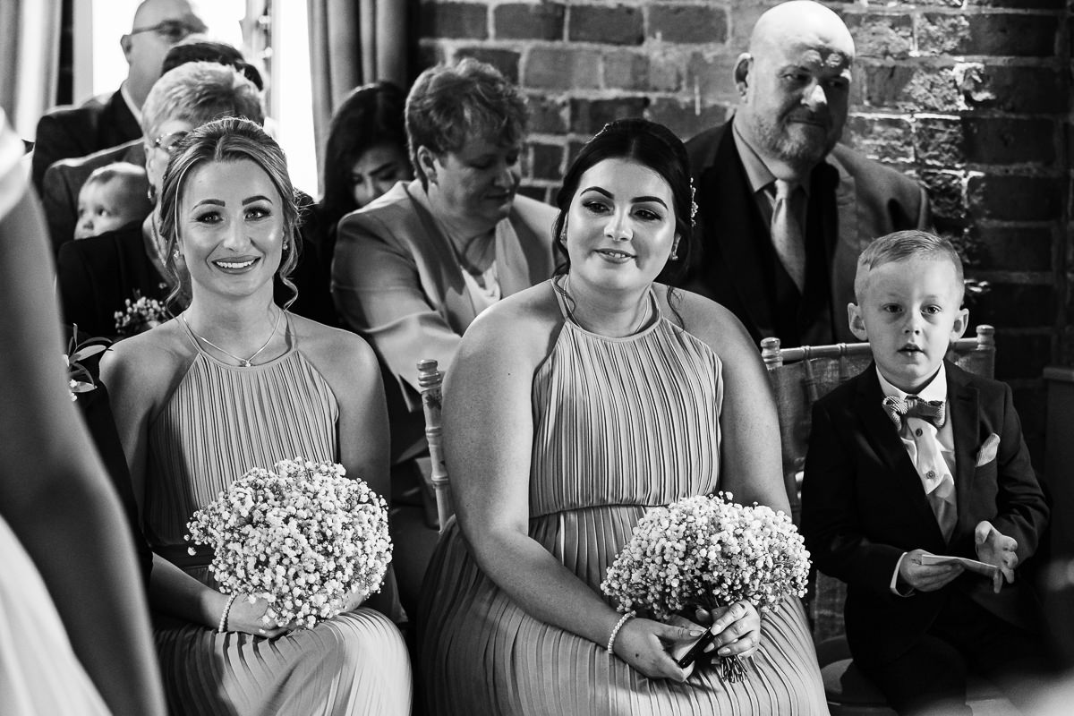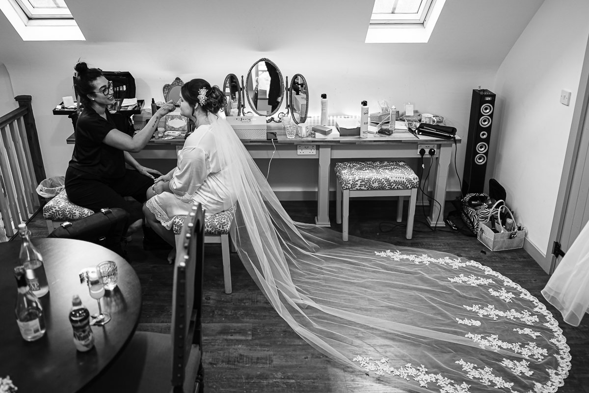 As Storm Dennis was doing its best to blow people off their feet outside I made my way into the relative calm of The Bridal Loft, Blakelands very own self contained bridal preparation area, to meet with Esme and her bridesmaids. It was a hive of activity with Leena Leigh on makeup whilst Hair by Mrs B was busy with coiffuring duties. Meanwhile Daniel and his groomsmen were readying themselves over in the main house before heading to the bar in the Lodge to meet with the guests prior to the ceremony.