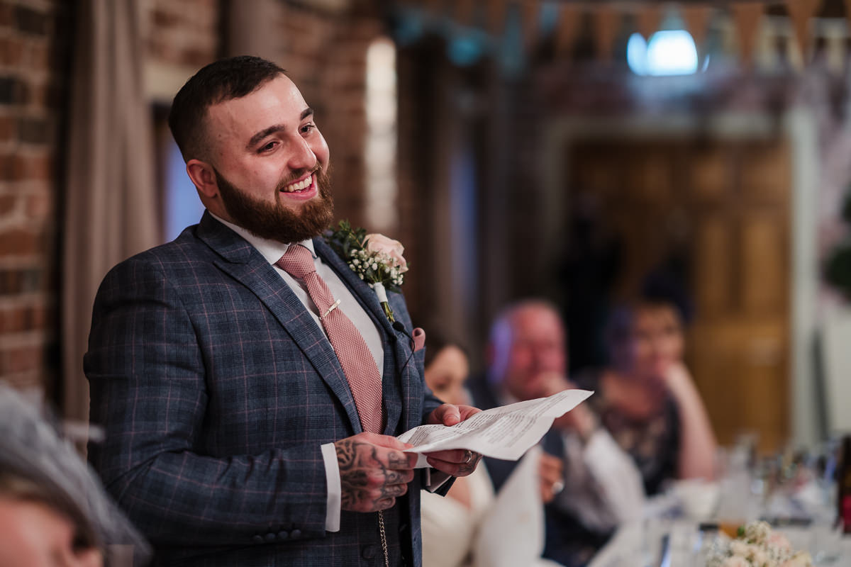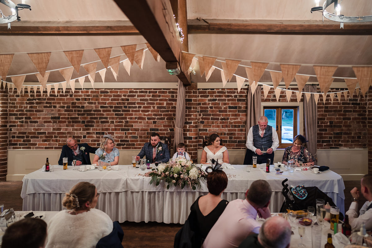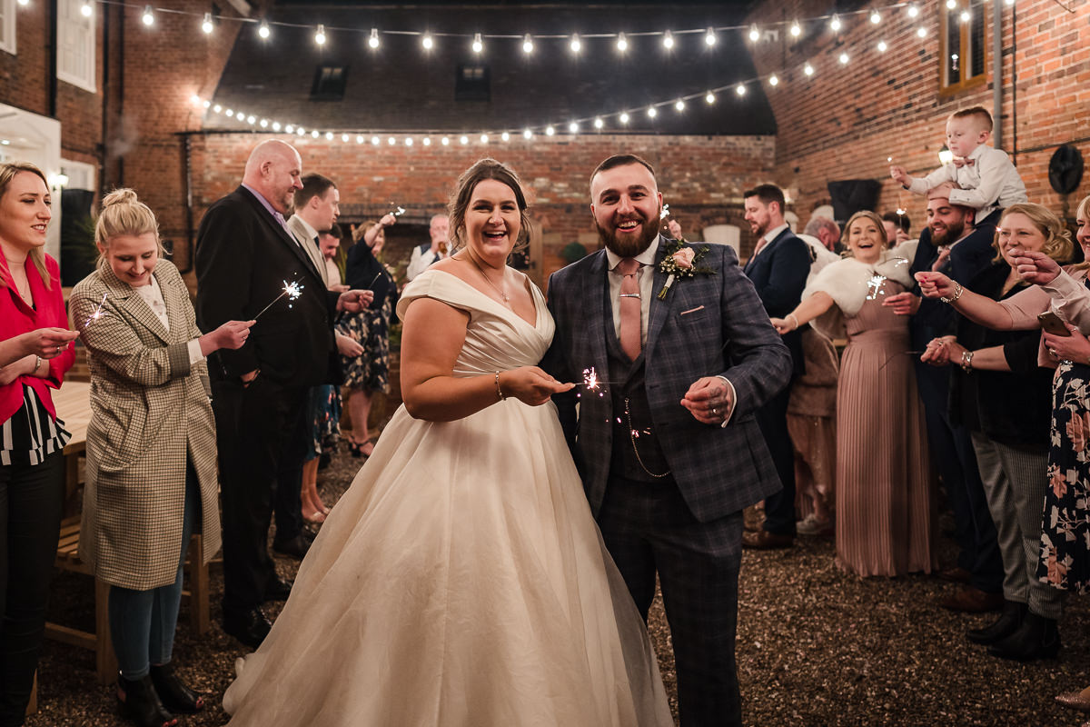 With the drinks quaffed and canapes munched the wedding party made their way back into the Maltings Barn for the wedding breakfast. This was followed by some very heartfelt speeches before the barn was prepared for the evening reception. The party then continued into the evening before the bride and groom made a spectacular sparkler exit.