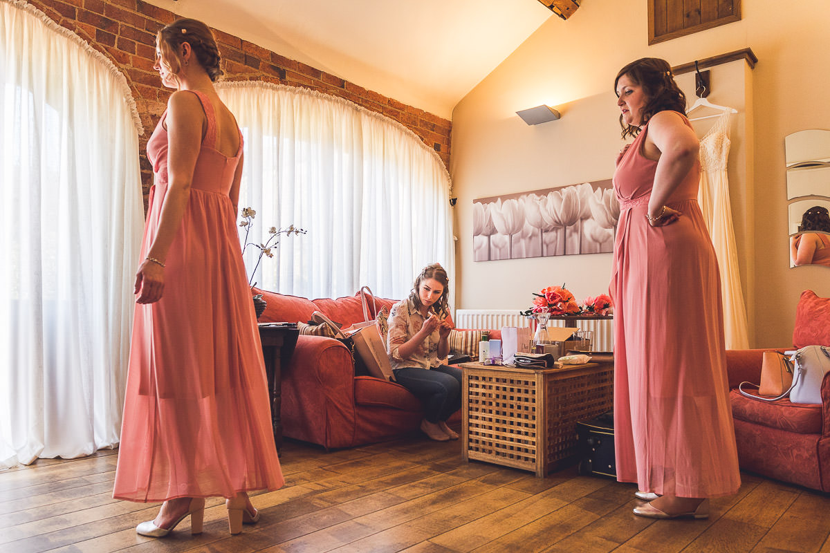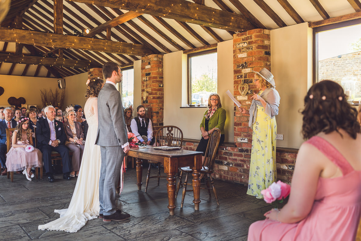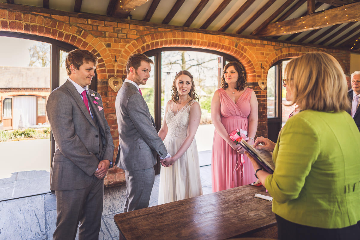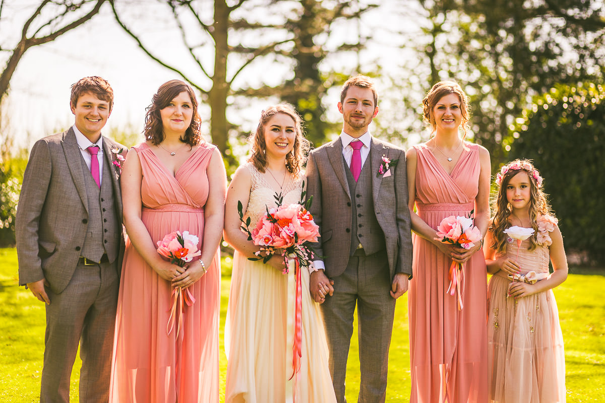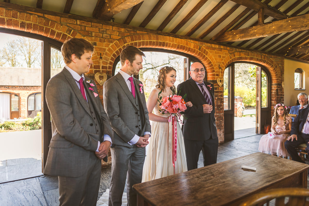 I met with Lucy and her bridesmaids on the morning of the wedding at the Dodford Room at the venue, which a a lovely space set aside for the bridal prep. Lucy wore a vintage inspired Catherine Deane wedding dress which was from Serendipity Brides in Weedon whilst her bridesmaids wore matching pink dresses which were from Debenhams. Hair was by Adorable Hairdressing Company in Rugby whilst the girls did their own makeup. Lucy also made all of the flowers herself from paper, they were incredibly realistic and even had a wasp confused! Aron and his best man Harry wore grey Ted Baker suits with pink accessories to match the bridesmaids.