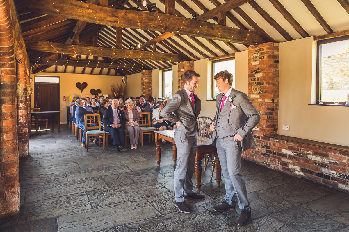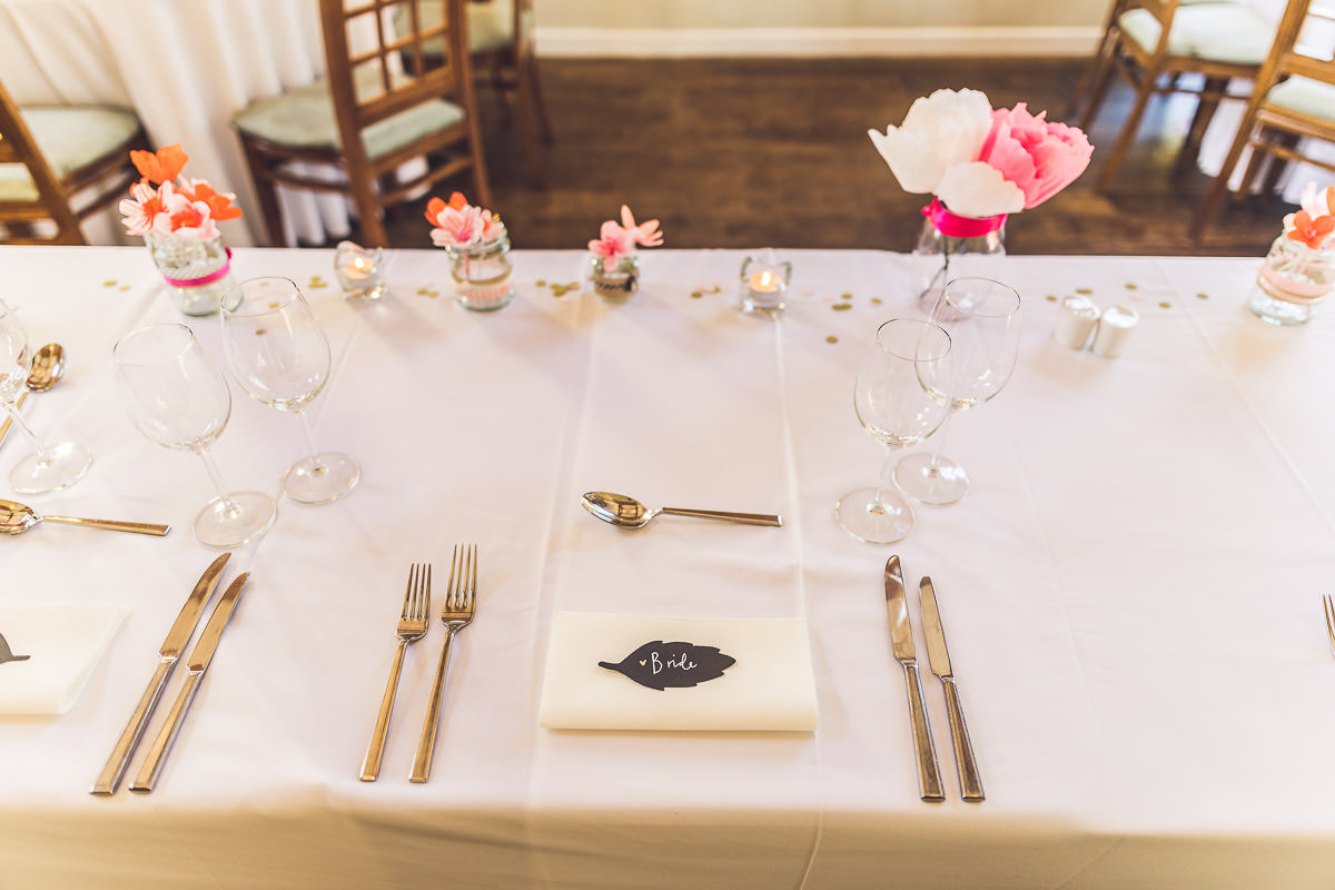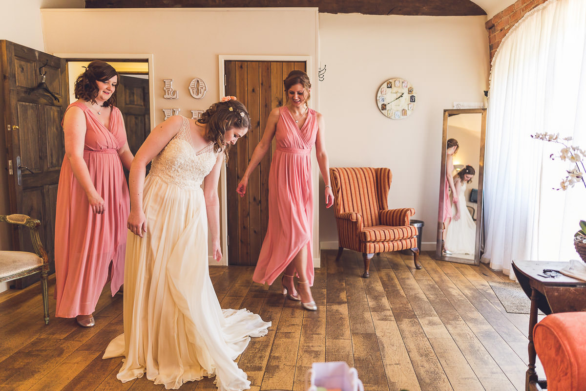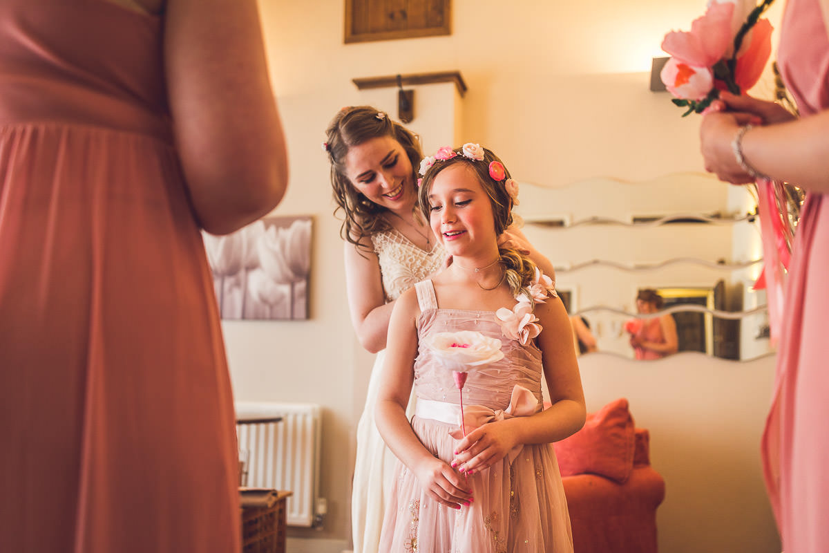 I met with Lucy and her bridesmaids on the morning of the wedding at the Dodford Room at the venue, which a a lovely space set aside for the bridal prep. Lucy wore a vintage inspired Catherine Deane wedding dress which was from Serendipity Brides in Weedon whilst her bridesmaids wore matching pink dresses which were from Debenhams. Hair was by Adorable Hairdressing Company in Rugby whilst the girls did their own makeup. Lucy also made all of the flowers herself from paper, they were incredibly realistic and even had a wasp confused! Aron and his best man Harry wore grey Ted Baker suits with pink accessories to match the bridesmaids.