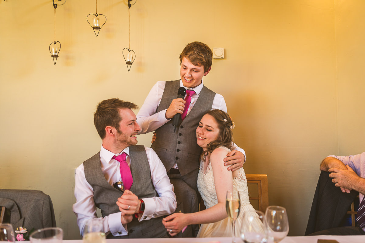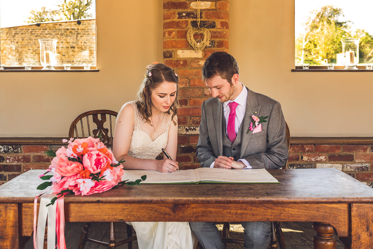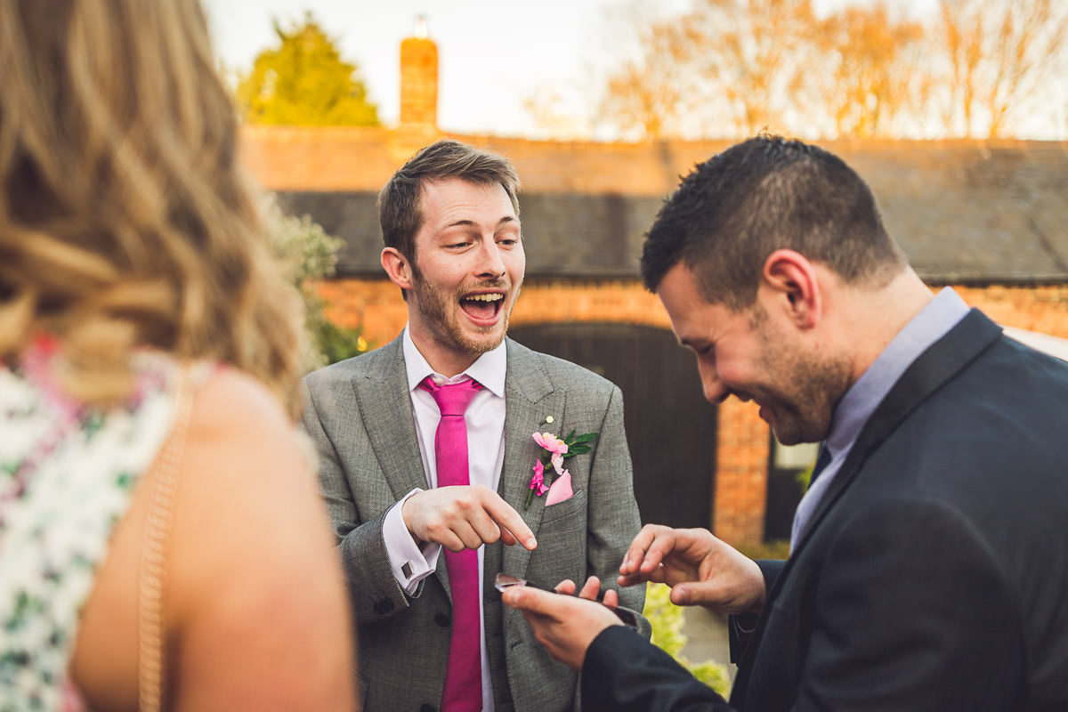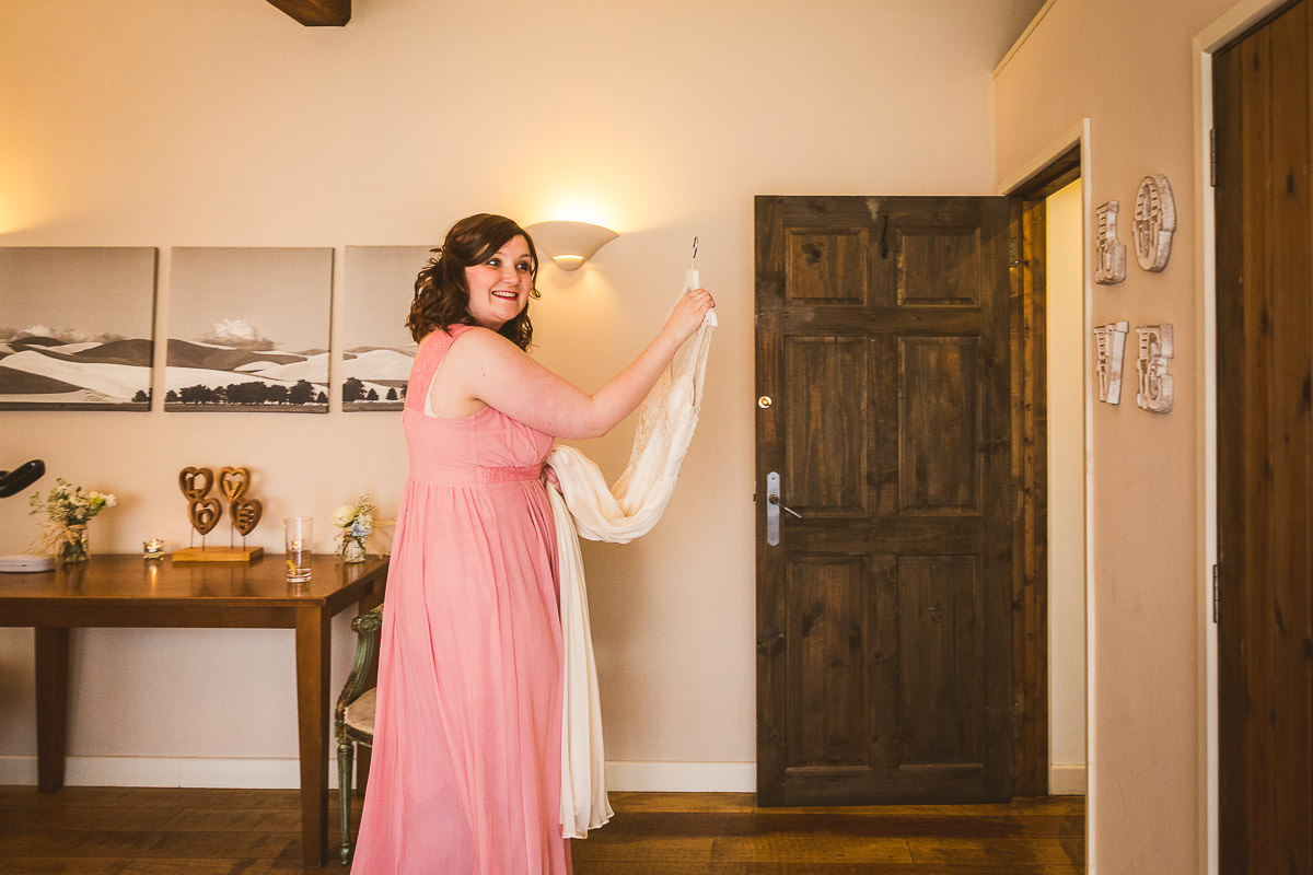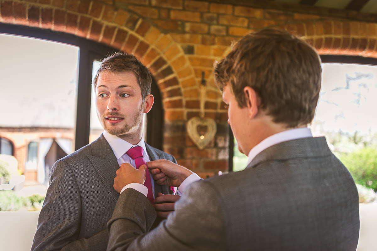 I met with Lucy and her bridesmaids on the morning of the wedding at the Dodford Room at the venue, which a a lovely space set aside for the bridal prep. Lucy wore a vintage inspired Catherine Deane wedding dress which was from Serendipity Brides in Weedon whilst her bridesmaids wore matching pink dresses which were from Debenhams. Hair was by Adorable Hairdressing Company in Rugby whilst the girls did their own makeup. Lucy also made all of the flowers herself from paper, they were incredibly realistic and even had a wasp confused! Aron and his best man Harry wore grey Ted Baker suits with pink accessories to match the bridesmaids.
