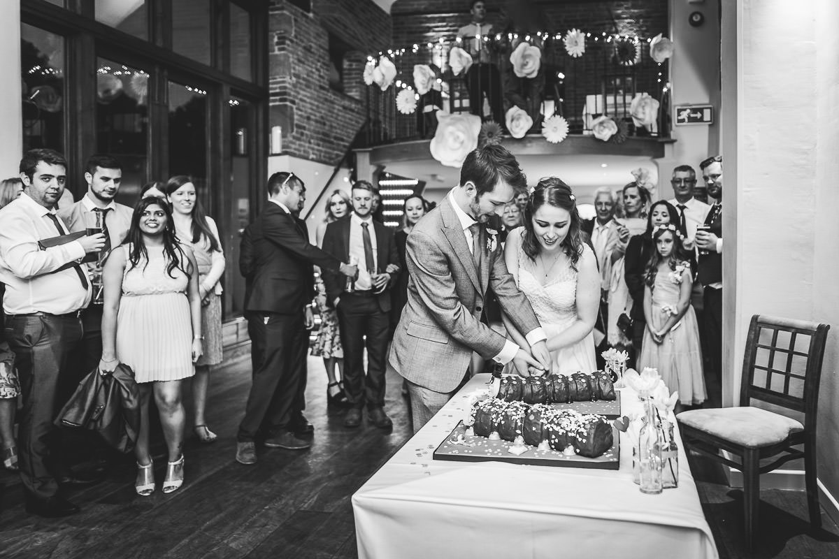 The ceremony, which was held in the Courtyard Barn, was a wonderful affair chock full of emotion with plenty of tears and laughter. Once the formalities had been completed everyone then headed outside to make the most of the wonderful April weather before heading into the Catesby Barn for the wedding breakfast. The food was supplied by Lemon Zest who provided a stunning three course menu, although the bride and groom provided their own wedding cake in the form of a pair of giant Colin and Connie the Caterpillar cakes.