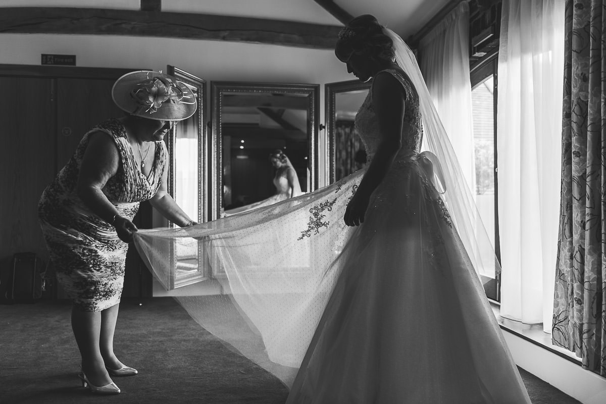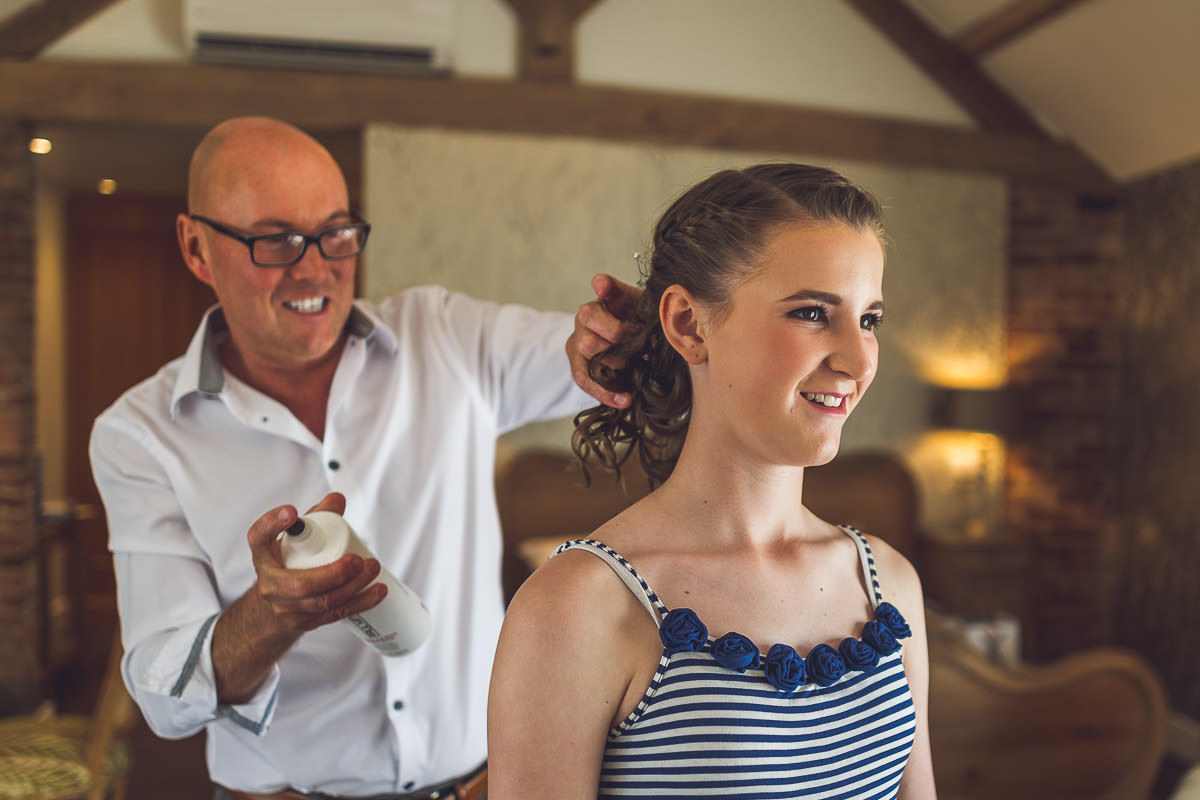 I met up with Lucy and her bridesmaids for bridal prep in The Gallery room at Mythe Barn, hair was by JHD (John’s Hair Design) of Nuneaton and makeup by Rachelle Grimes. We were joined by Lucy and Doug’s daughter Lilly, who was one of the bridesmaids, and also by their son Max, who provided plenty of energy into the proceedings as well and a fist full of Minions!