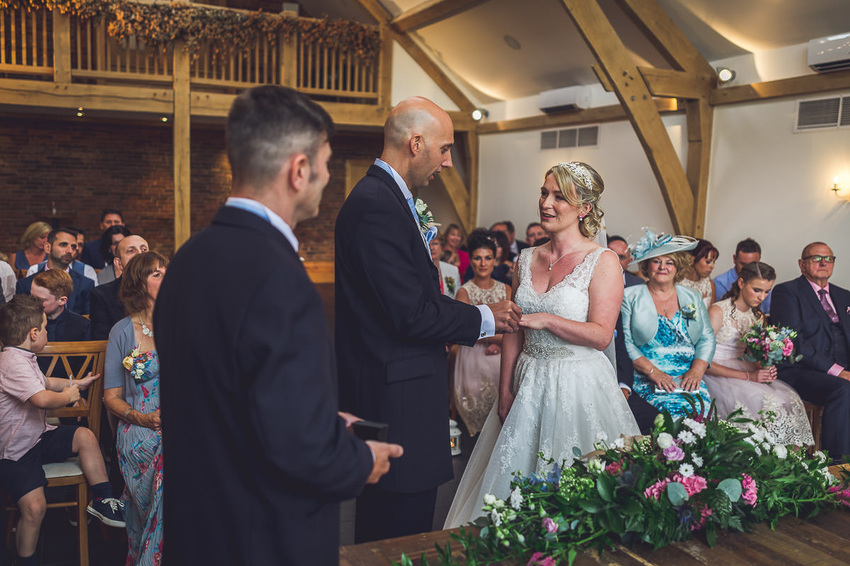 Two weekends ago I was at Lucy and Doug’s wedding at Mythe Barn near Atherstone, which sits on the border of the three counties of Leicestershire, Warwickshire and Staffordshire. The farm upon which the barn is located is steeped in history and is thought to be the last camp site for King Richard III’s army before his defeat at the Battle of Bosworth in 1485. This year seems to have seen a lot of strange weather and Lucy and Doug experienced the full gamut of what the British summer can throw at people in one day. We had everything from blistering sunshine to cold wind and torrential rain. However; the crazy weather didn’t stop the fun.