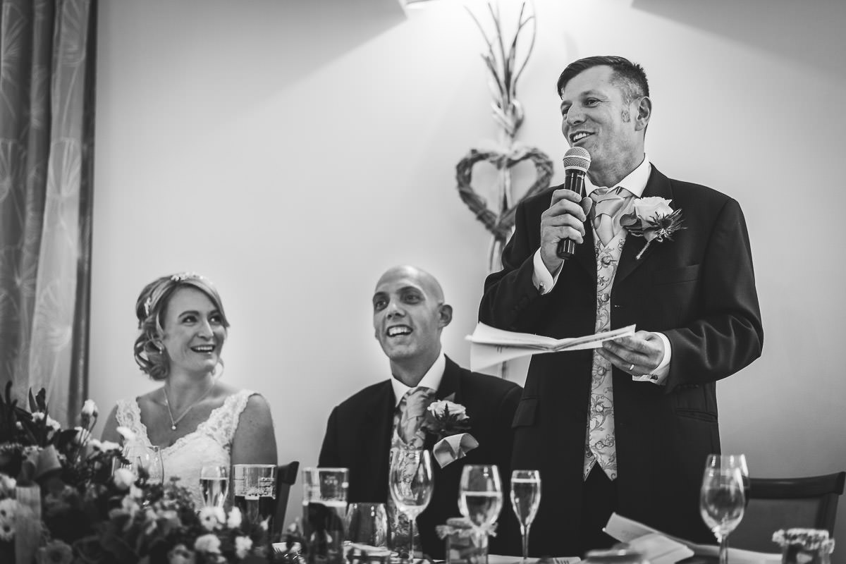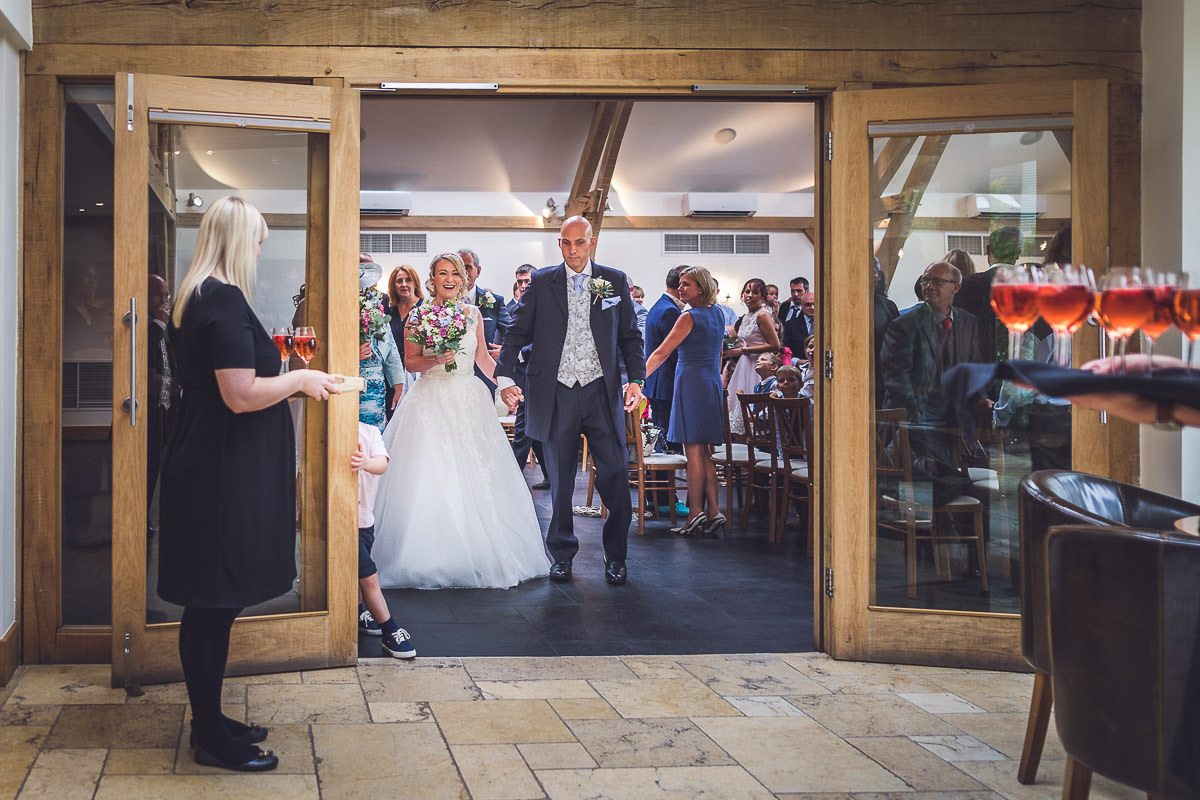 With the drinks quaffed everyone headed into The Grain Store for the stunning three course Wedding breakfast which was supplied by Mythe Barn’s in house catering team Galloping Gourmet. As the evening wore on The Grain Store was cleared to make way for Distorted Decade, a three piece band who played two pounding sets of guitar driven music. Here’s a few pictures from Lucy and Doug’s big day . . .
