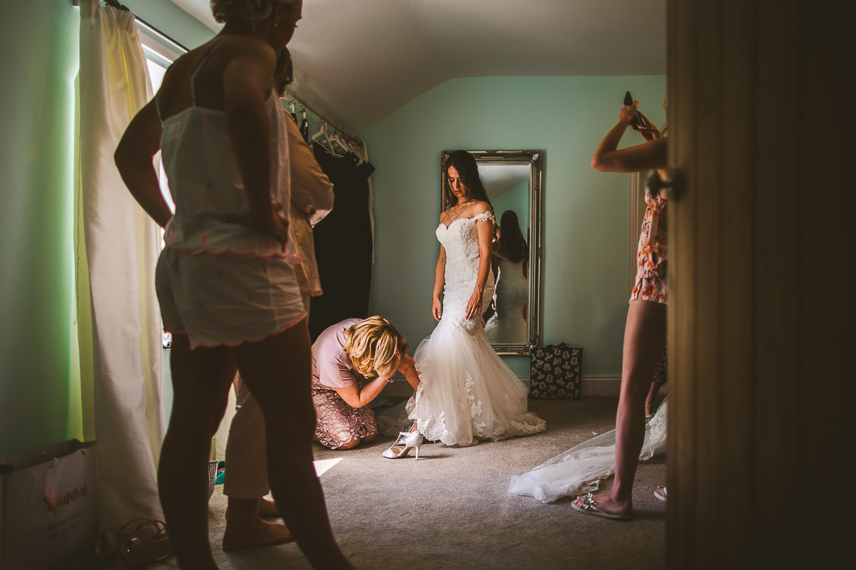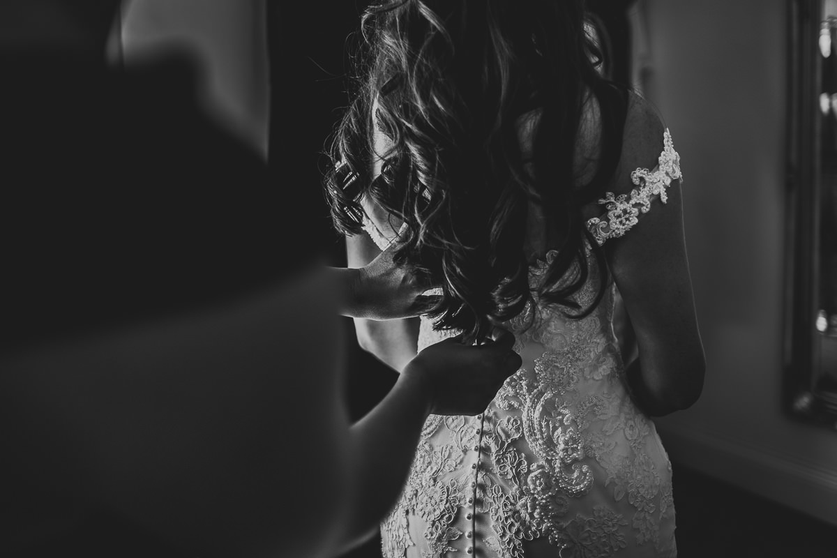 I met with Jennifer on the morning of the wedding at The Beauty Rooms, a hair and beauty salon that is actually part of the Somerford Hall estate. Once hair and makeup were completed Jennifer headed over to The Butler’s Cottage to finish her preparations with her bridesmaids. With breakfast eaten and some champagne supped it was then time for the girls to get Jennifer into her incredible Enzoani wedding dress which was from Lisa Rose Bridal in Solihull.
