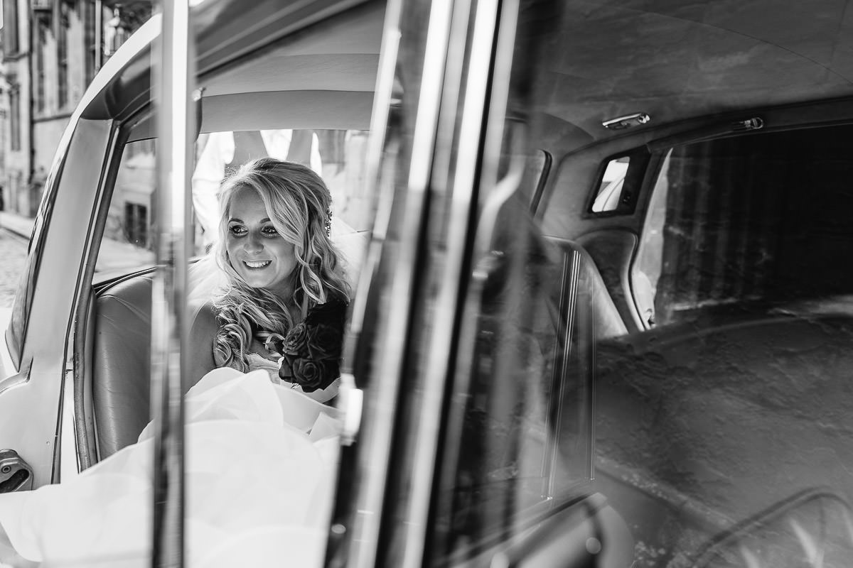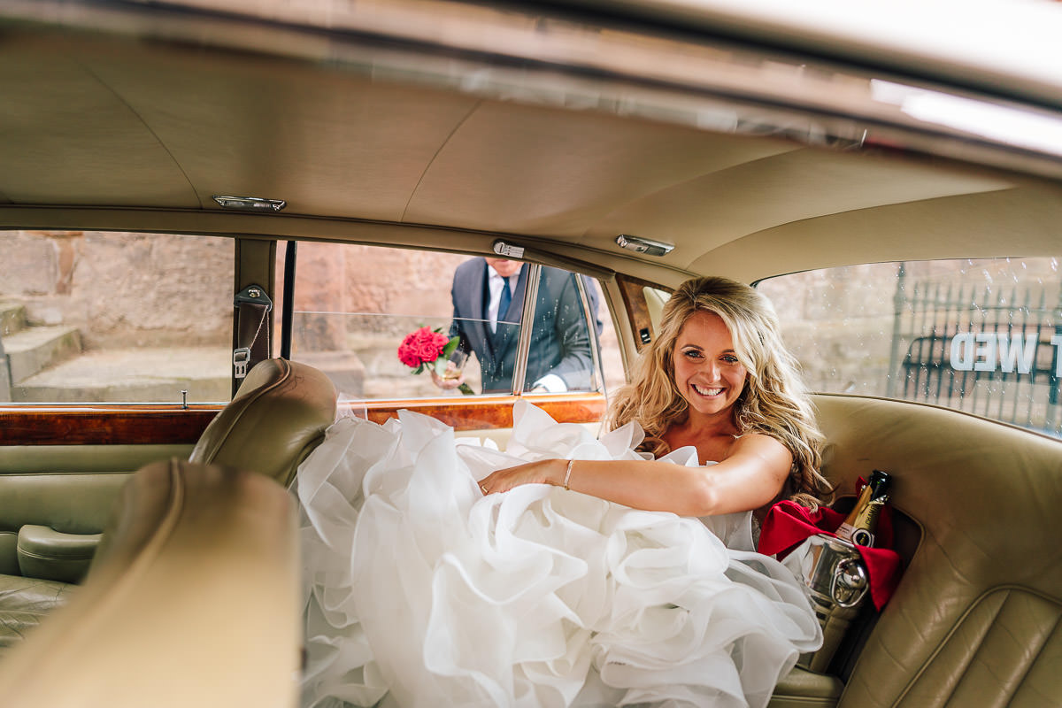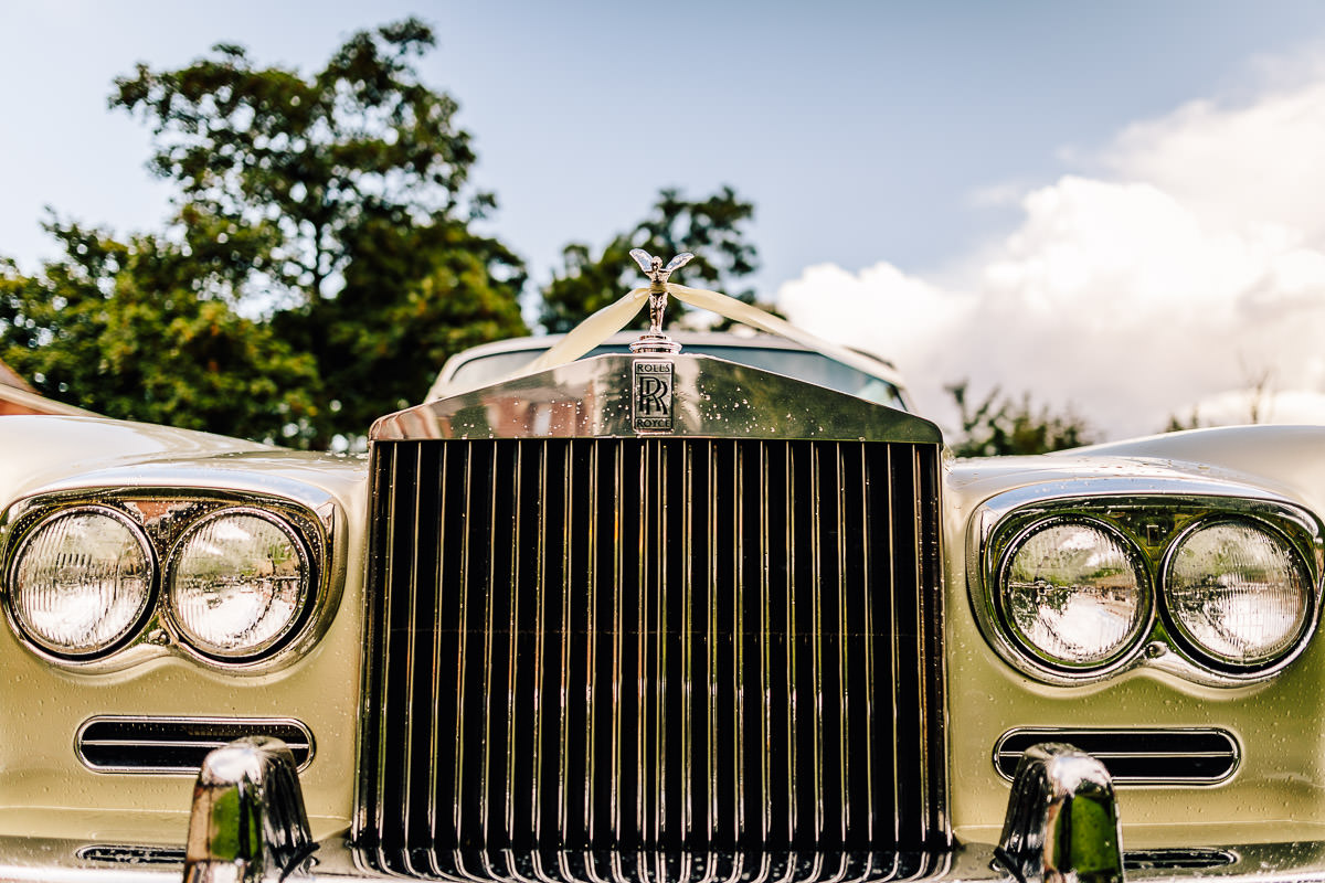 I met with Laura and her bridesmaids at The Manor Hotel with the bridal preparations well underway, makeup and hair were by Mosey Bow and Elizabeth Bayton. As the time of the ceremony approached Laura got into her Mori Lee wedding dress which was from Brides of Solihull. As the wedding photographer you usually end up getting involved in many different aspects of the wedding day, but I think this was the first wedding where I’ve had to dress the bride! To get from the hotel in Meriden to the ceremony in Coventry Laura and her dad travelled in style in a stunning 1968 gold Rolls Royce which was hired from Hooray Henry’s.
