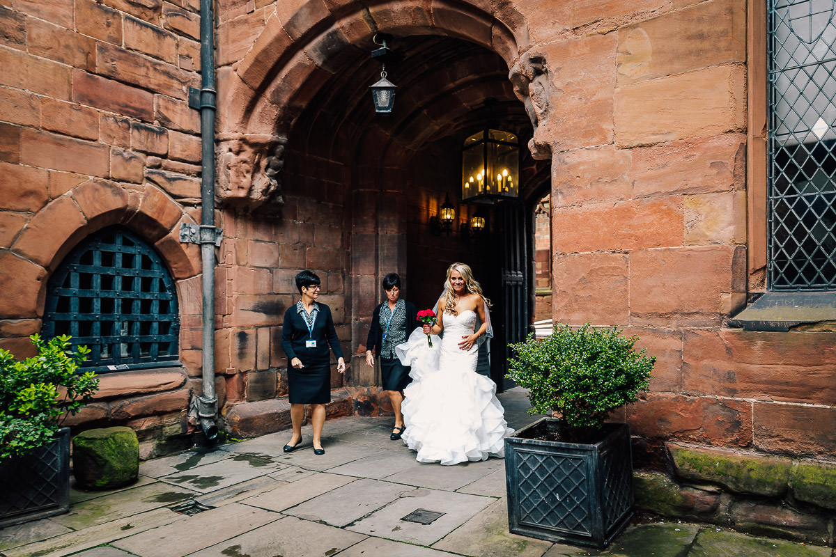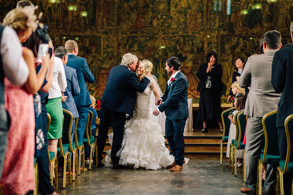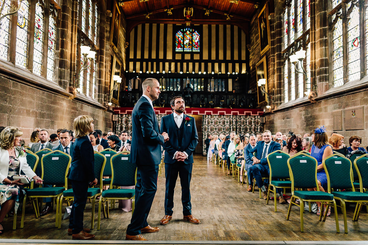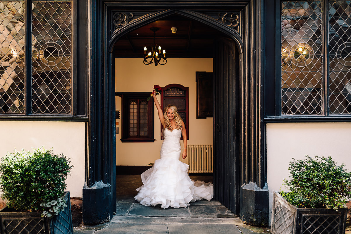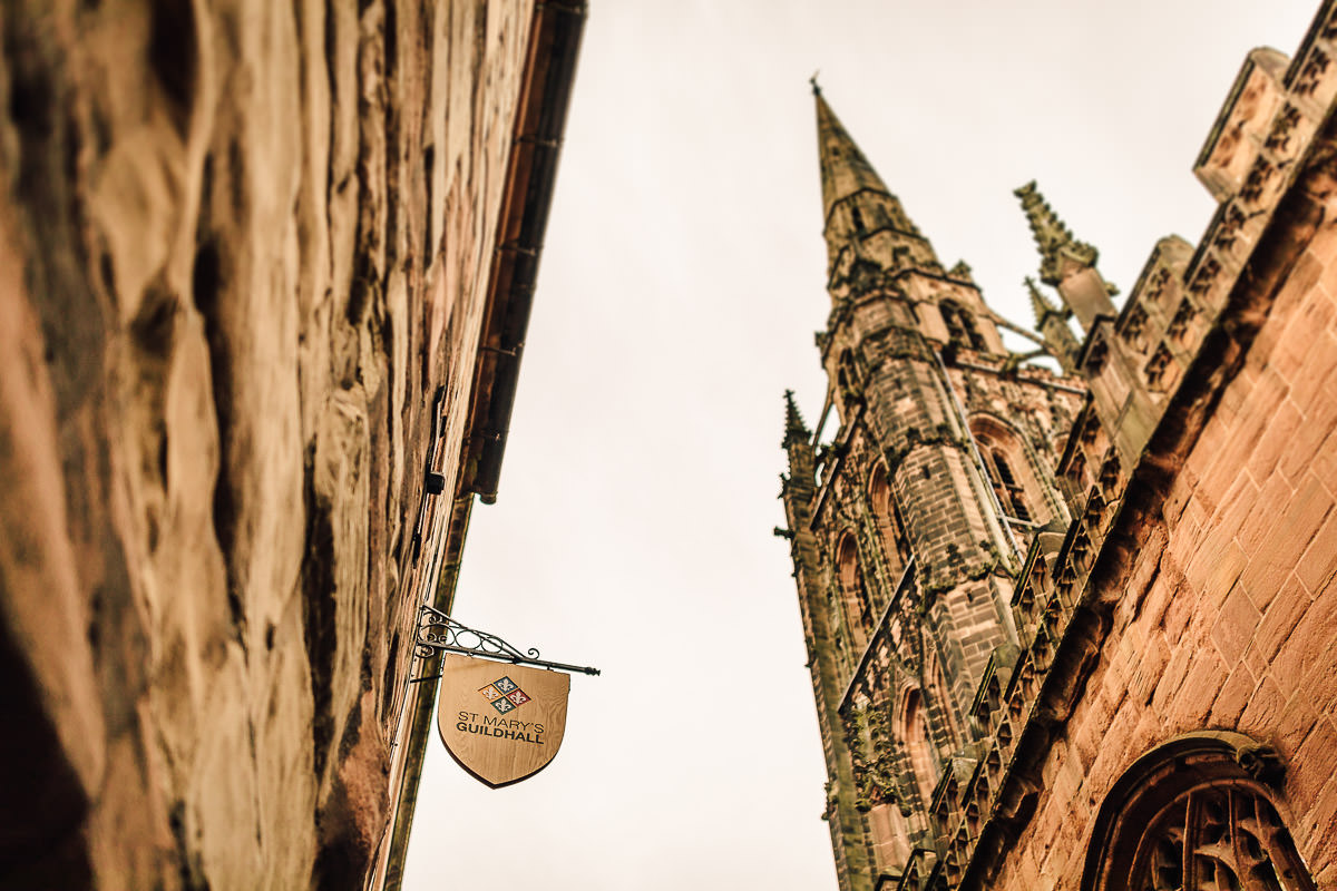 St Mary’s Guildhall in Coventry City Centre is a stunning venue for a wedding, and one that I love to shoot at. The guildhall has a long and fascinating history, it was constructed in 1340 on the former site of Coventry Castle and became home to the city’s merchant guilds and leading businessmen. With the dissolution of the guilds in the 16th century it then found use as the city’s council house and also a theatre space, often frequented by some bloke called Shakespeare. Between 1569 and 1570 it was used by Queen Elizabeth I for the imprisonment of Mary Queen of Scots. The Guildhall is also home to the famous nine meter wide and three meter high Coventry Tapestry which dominates the main room and has been hanging in the very same spot since 1500.