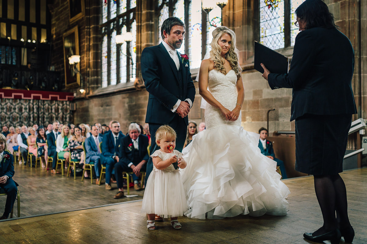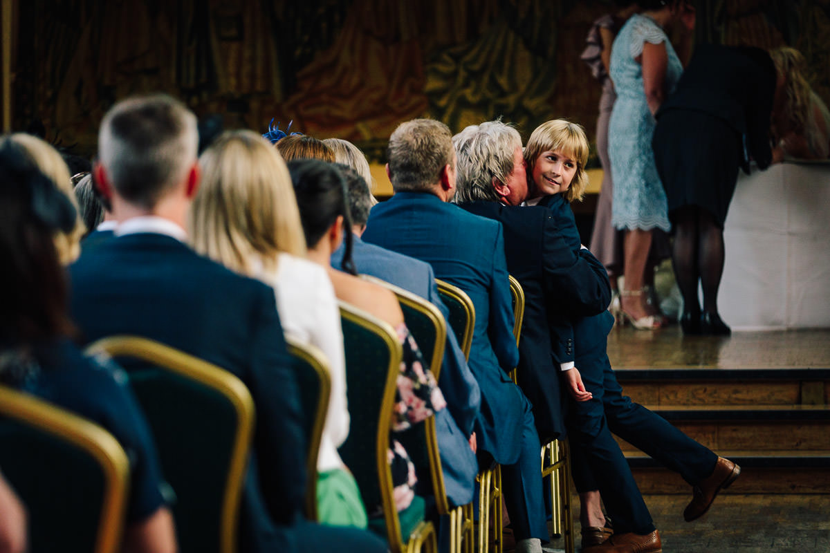 The Great Hall at St Mary’s Guildhall really is a grand space, lined with original artworks, armour and stained glass windows. The ceremony, which took place right in front of the Coventry Tapestry was a jovial affair and featured Laura and Mark’s three children as well as four other little ones who did a beautiful reading during the proceedings. It was also great to catch up with Sarah and Steven, who were guests, whose wedding I photographed at St Mary’s Guildhall three years ago.