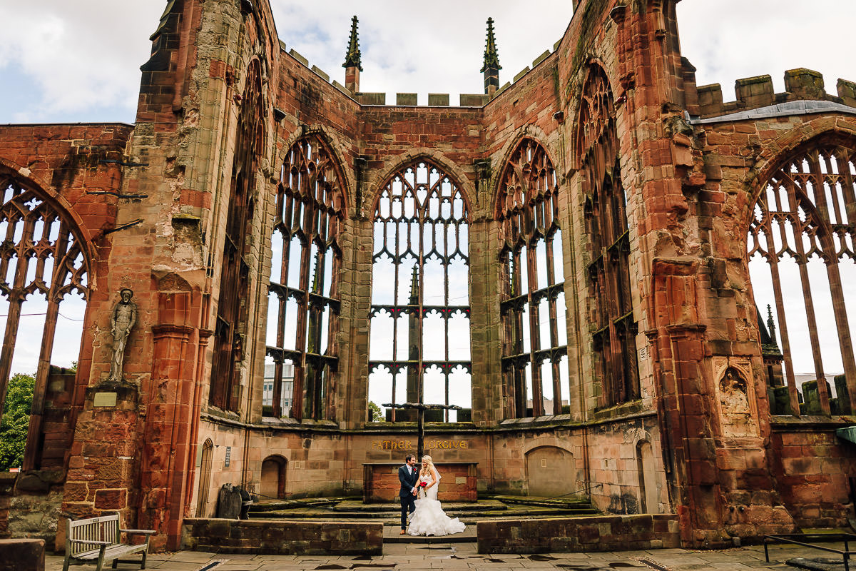 Once the wedding ceremony was completed Laura and Mark hopped next door into the ruins of St Michael’s Cathedral for a few quick photos before the rain started and we had to make our way back over to Meriden for the wedding reception at The Best Western Manor Hotel. Following the wedding breakfast the guests were treated to some fantastic speeches (including possibly the best groom’s speech ever) before the room was readied for the evening entertainment. As the lights dimmed Souled Out 2 Funk hit the stage and got the dancefloor bouncing with a string of funk, soul, R&B and disco hits which kept everyone grooving. Here’s a few pictures from Laura and Mark’s wedding . . .