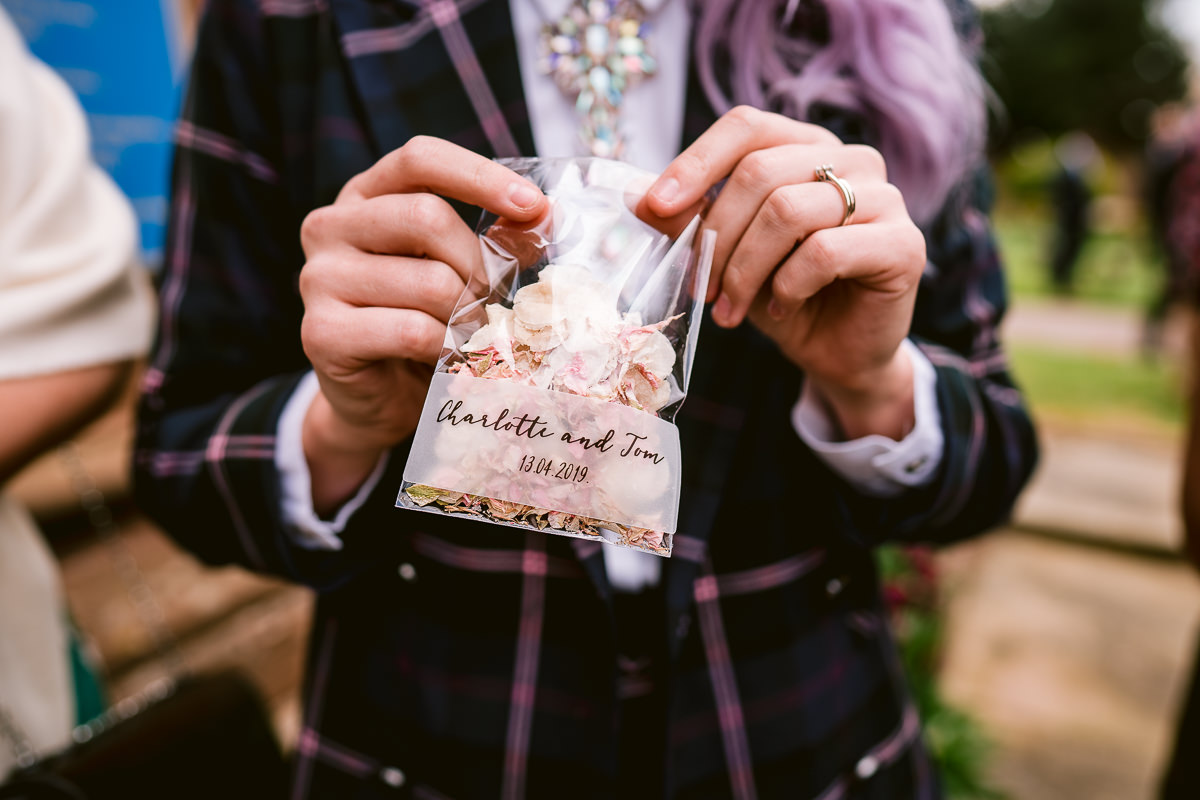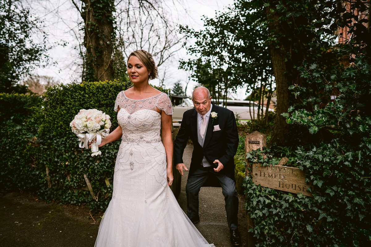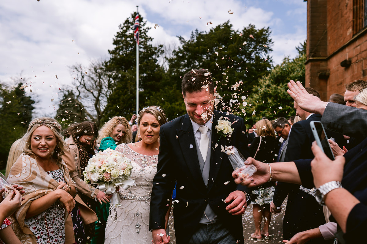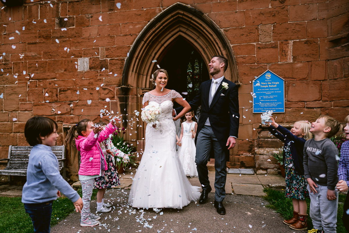 The ceremony took place at St Mary’s Church in Temple Balsall. Patiently waiting at the altar was Tom, who looked very dapper in his dark three piece morning suit which was Peter Posh Formal Suit Hire. The ceremony, which was conducted by the Rev’d Kathy Lloyd Roberts, was a lovely affair and featured lots of wonderful personal touches throughout. None more so than when the newly married couple exited the church to find many of the children from Charlotte’s class, which is at the school adjoining St Mary’s, waiting outside to greet them. I’m not sure if it was the hayfever but there was definitely something in my eyes.