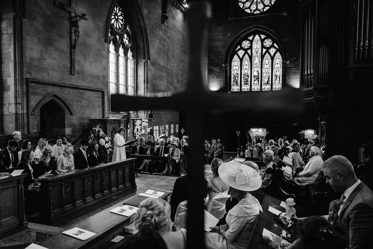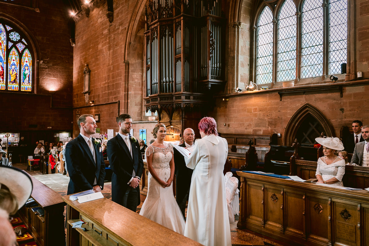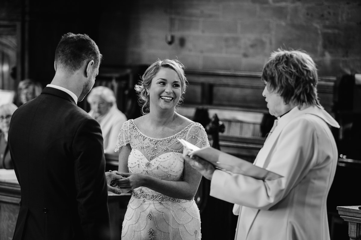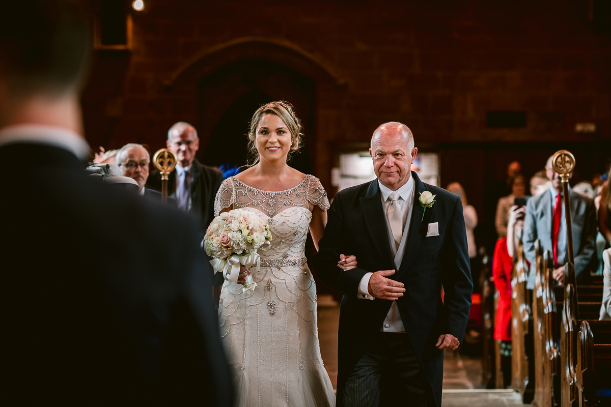 I met with Charlotte and her bridesmaids at Walton Hall on the morning of the wedding. It was a hive of activity with Sophie Sheridan being kept busy with hair and makeup duties whilst Charlotte’s adorable flower girls kept everyone else on their toes! As the ceremony time crept closer Charlotte donned her stunning, vintage inspired, True Bride wedding dress from Georgina Scott Bridal, before making her way to church in a 1930 Style Beauford Wedding Car which was from Limousine Group Birmingham.