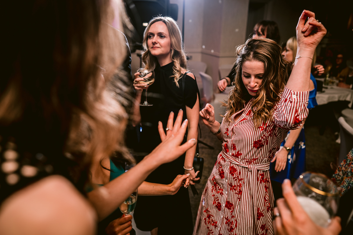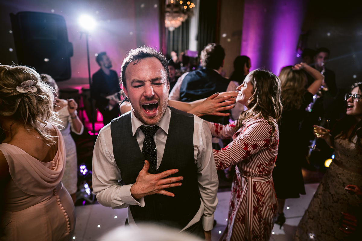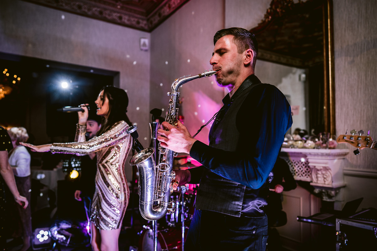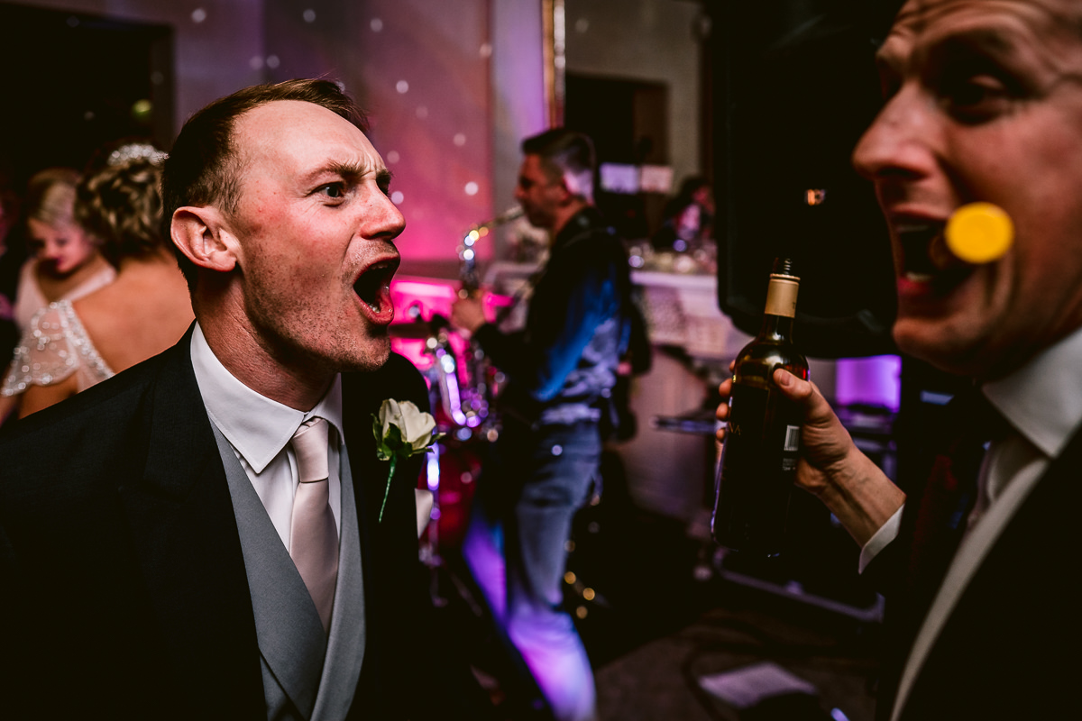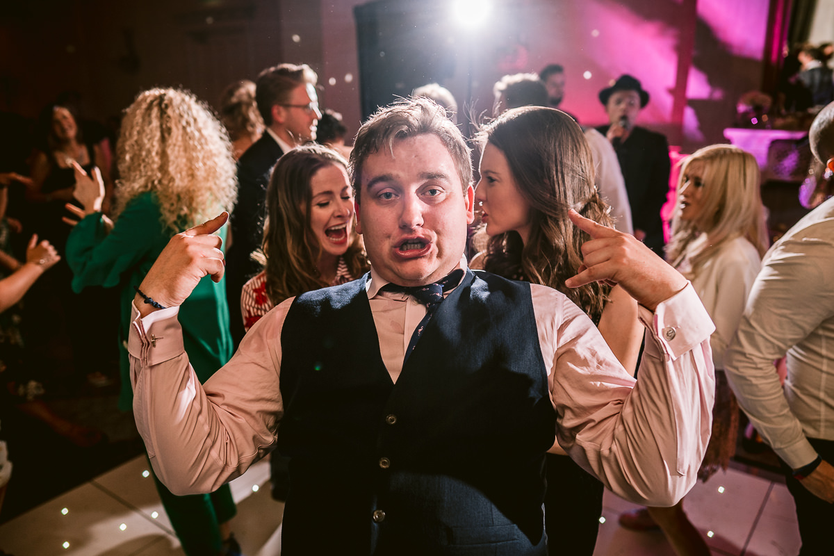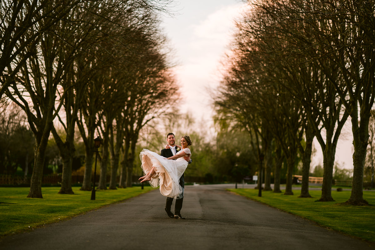 With the confetti thrown the congregation then made their way back to Walton Hall for a stunning three course wedding breakfast which was served in the Moncrieffe Room. With the speeches completed I took Charlotte and Tom out into the hotel grounds for some portraits as the last of the spring sunshine ducked below the horizon before heading back inside for the first dance. For the evening reception the rather brilliant Apollo Soul got the party rocking and the dance floor jamming with a selection of pop, funk, soul and disco hits. Some very impressive shapes were thrown by the guests!