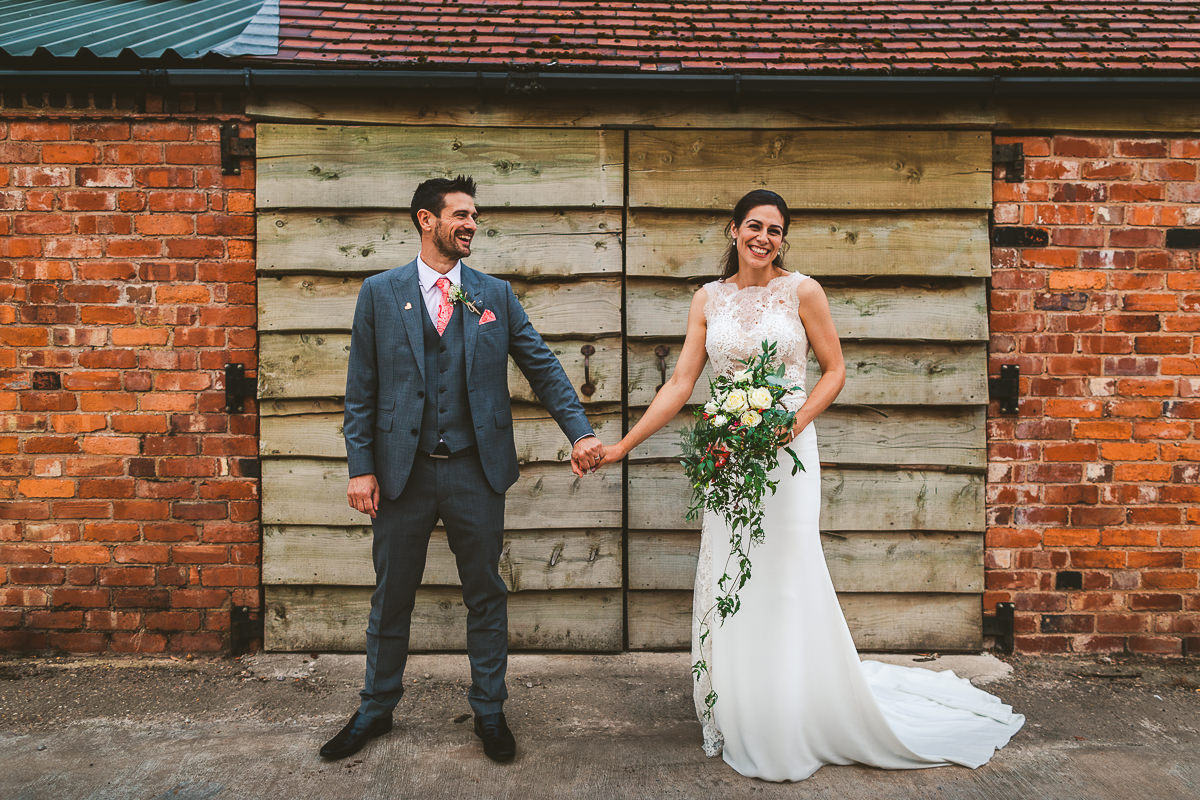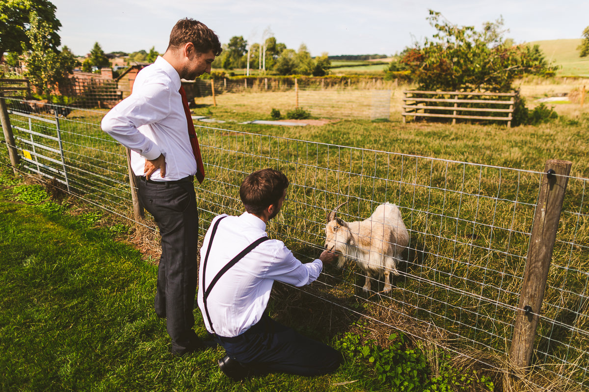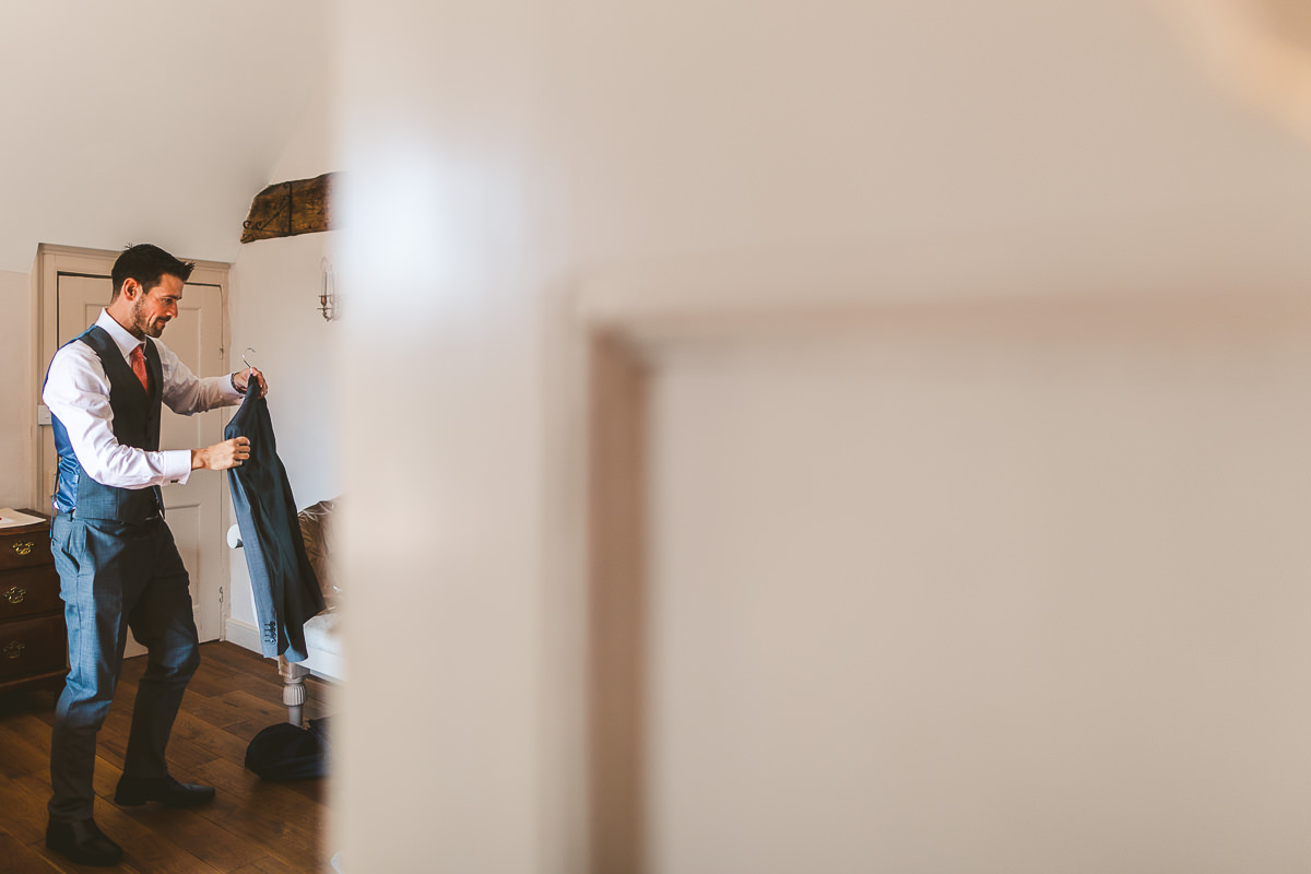 Whilst the girls were readying themselves in the bridal prep room, David was finishing his preparations in the adjacent farmhouse. For the ceremony he wore three piece suit which was from Moss Bros whilst Kat looked stunning in her beautiful lace detailed San Patrick wedding dress which was from Lisa Rose Bridal, Solihull.