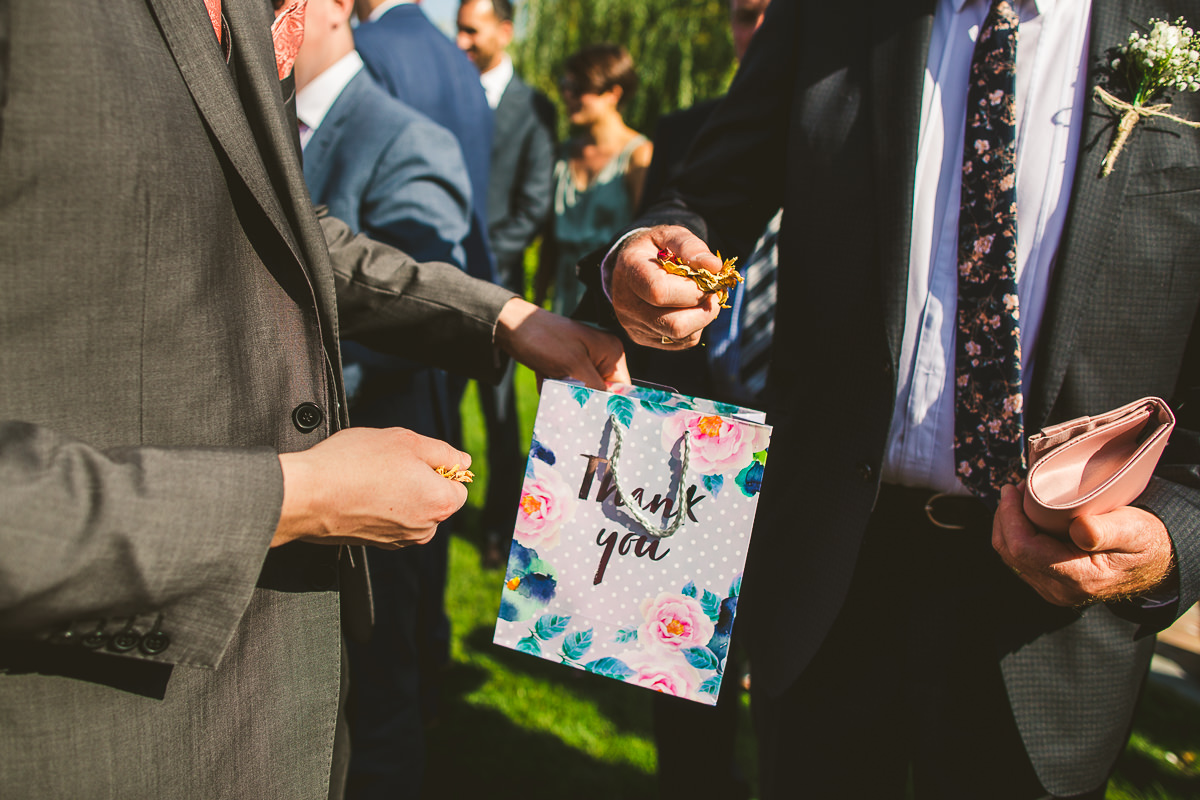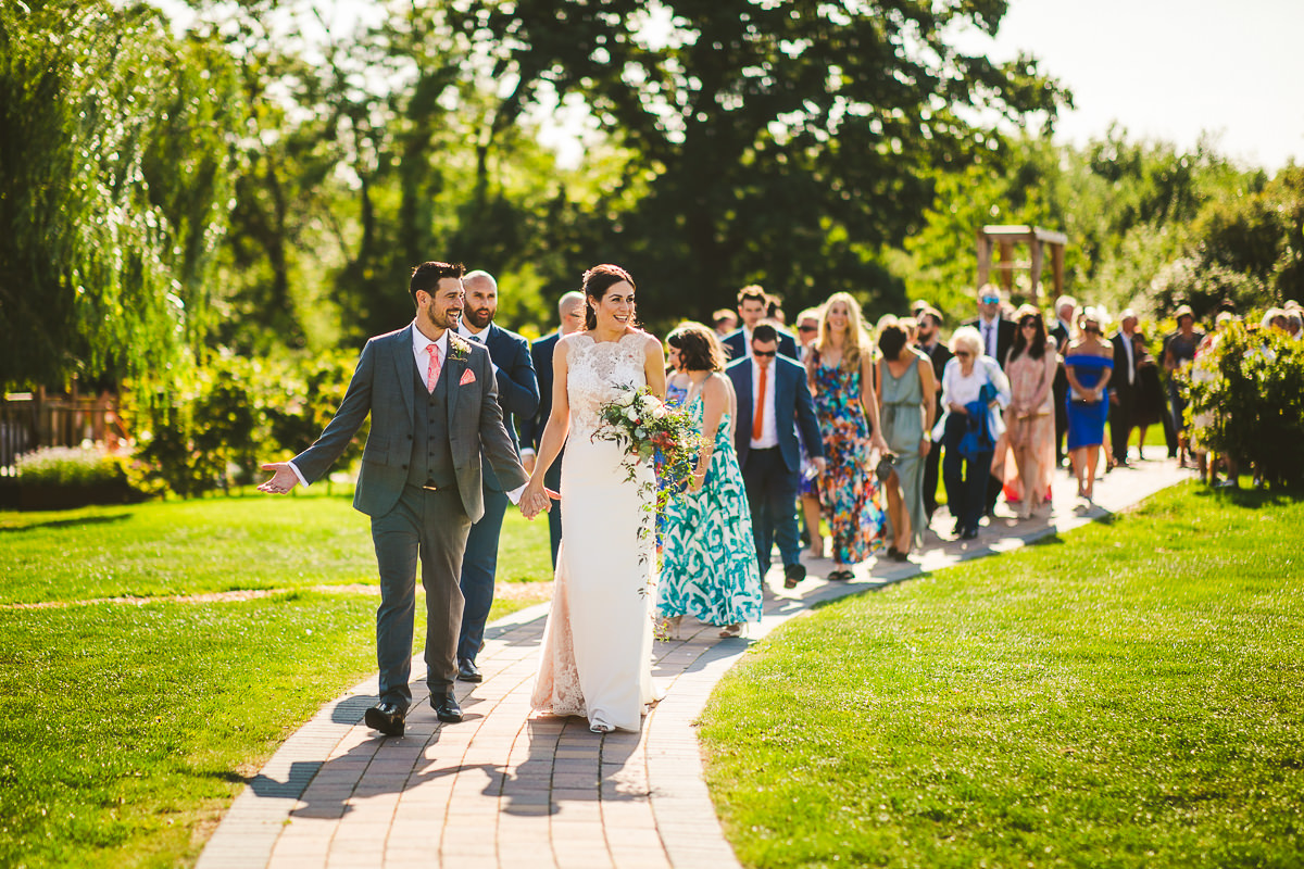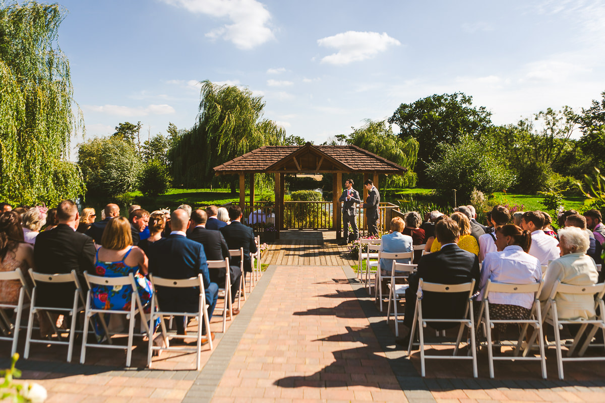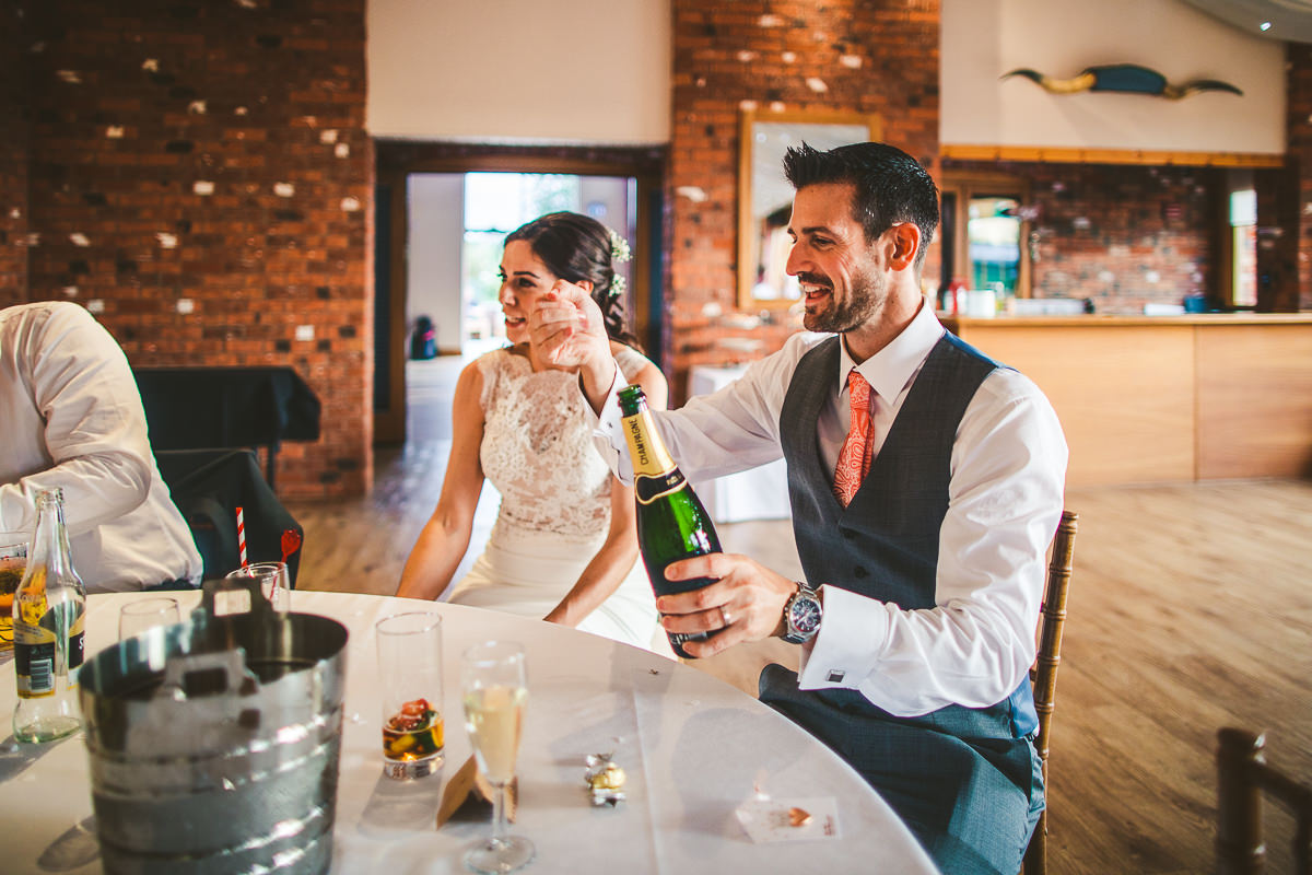 The ceremony took place outside by the lake, making the most of the brilliant weather that we’ve been fortunate to have this summer. It was a wonderful affair conducted in front of the bride and groom’s closest friends and family. With the rings exchanged and the confetti thrown everyone made their way back to the barns for the drinks reception which was followed by a stunning high tea wedding breakfast.